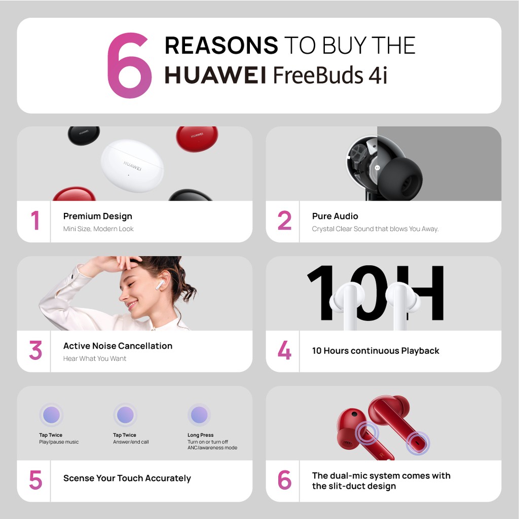 Kelebihan - Kelebihan membeli [12.12] HUAWEI FreeBuds 4i Earphones | Active Noise Cancellation | 10 hours Battery Life di Toko ini