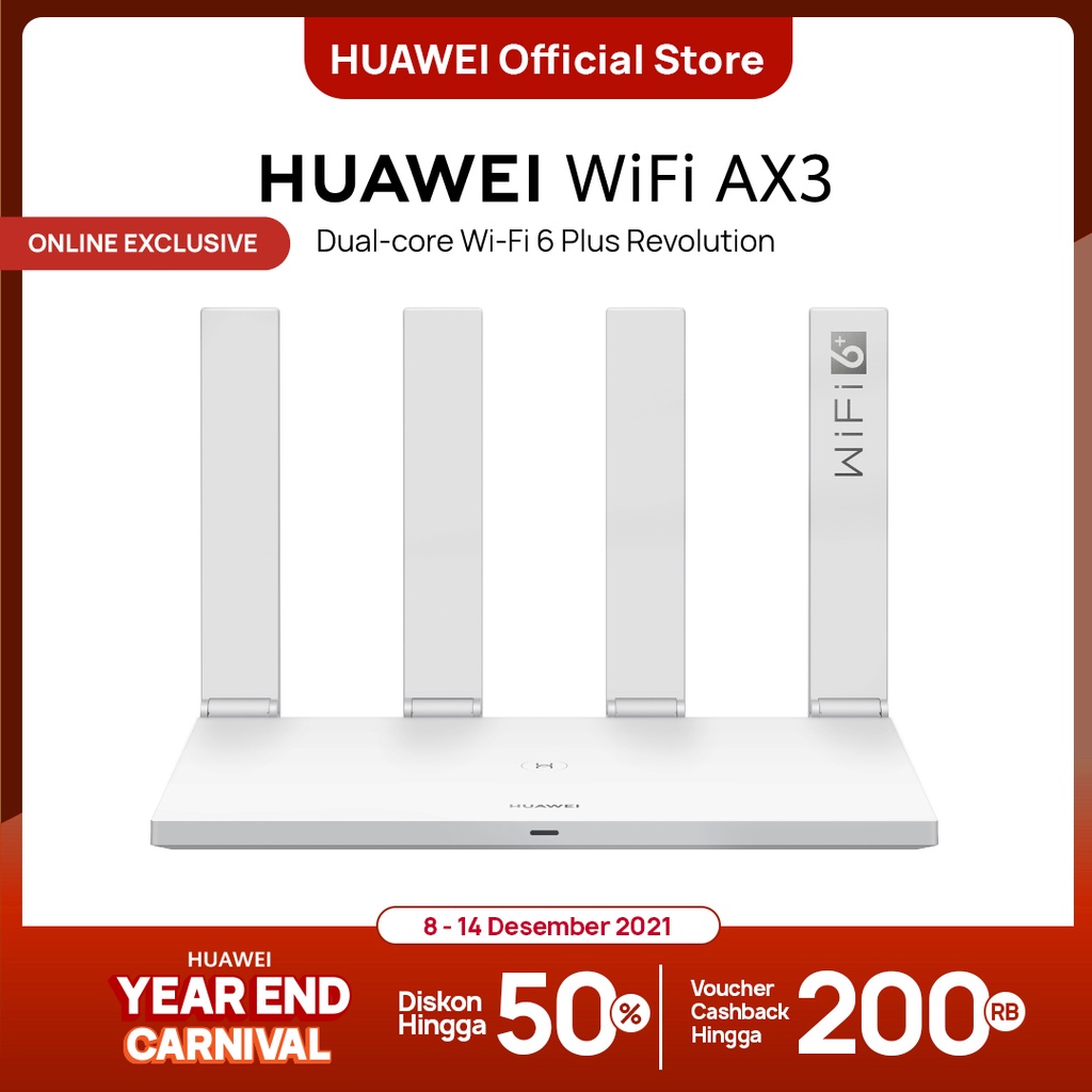 Harga [12.12] HUAWEI WIFI AX3 (WIFI-6 supported) | 3000 Mbps | Wi-Fi 6 Plus | OFDMA Multi-user saat ini masih murah hanya Rp. 649.000,00, kita tidak akan pernah tahu tentang Harga ini di masa depan, juga stok barang ini nanti atau besok hari, bisa saja harganya naik tinggi atau bisa juga stok sudah Habis.