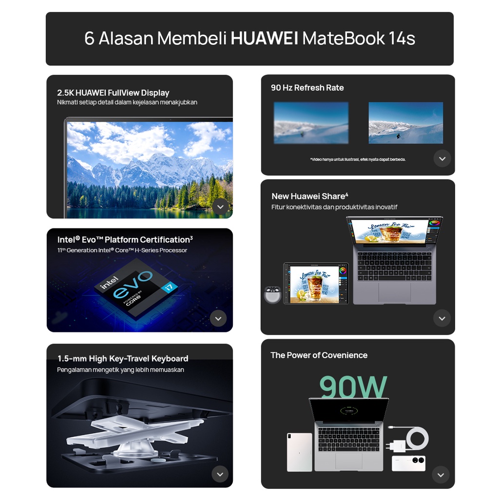 Kelebihan - Kelebihan membeli [12.12 NEW - Pre Order Now] HUAWEI Matebook 14s Laptop [Intel i5/8GB/512GB SSD] | 2.5K Touchscreen FullView Display di Toko ini