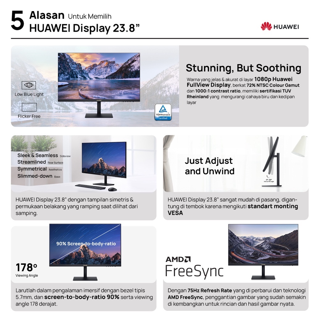 Alasan kenapa harus beli [12.12] HUAWEI Display 23.8" Monitor | Full HD Monitor | 1080P IPS FullView Display sekarang
