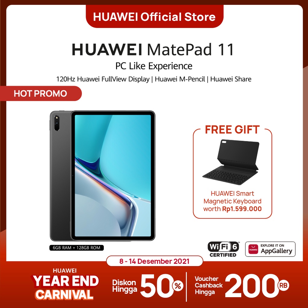 Racun Shopee Juga punya 4 Produk lain terkait Produk [12.12] HUAWEI MatePad 11 Tablet [6+128GB] | 120 Hz FullView Display | FREE Smart Keyboard yang perlu Anda lirik karena menarik, Produk itu adalah....