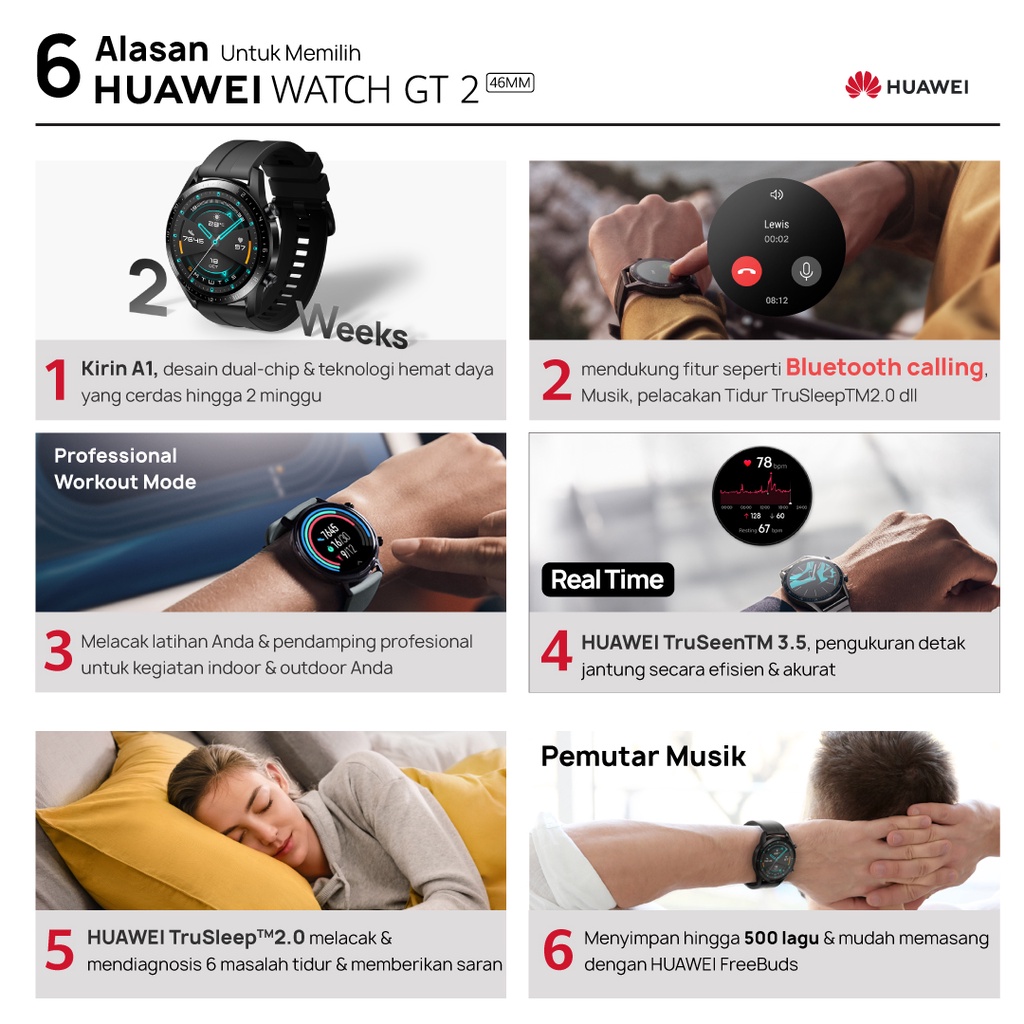 Kelebihan - Kelebihan membeli [12.12] HUAWEI WATCH GT2 46MM SmartWatch Pria | SpO2 Monitoring | Bluetooth Calling di Toko ini