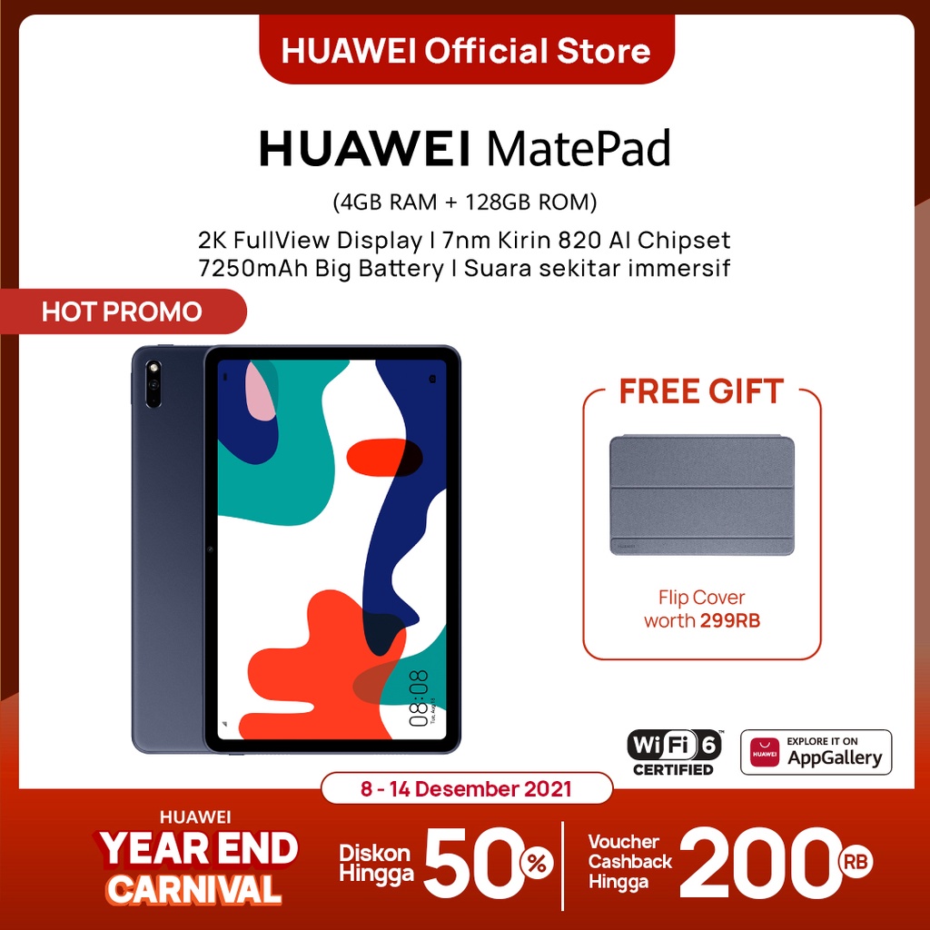 0 Response to "Jual [12.12] HUAWEI MatePad [4+128GB] 10.4" Tablet | 2K FullView Display | FREE Flip Cover"
