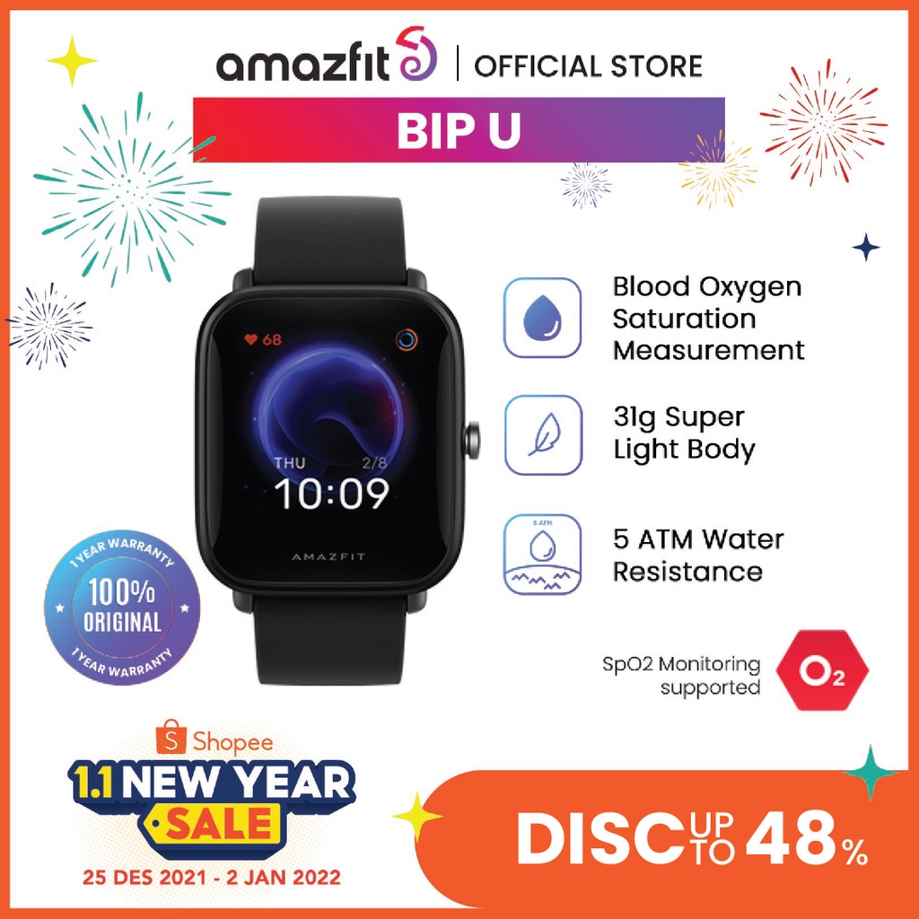 JUAL MURAH Amazfit Bip U Smartwatch SpO2 5ATM Water Resistant Color Display Zepp Sport Tracking Smart Watch For Android iOS Jam Tangan Pintar TERBARU
