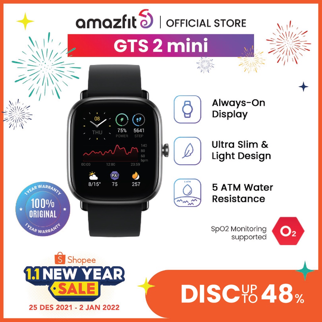 JUAL MURAH Amazfit GTS 2 Mini SpO2 GTS Black GPS Smartwatch AMOLED Display Zepp 70 Sports Modes Sleep Monitoring SmartWatch For Android iOS Jam Tangan Pintar TERBARU
