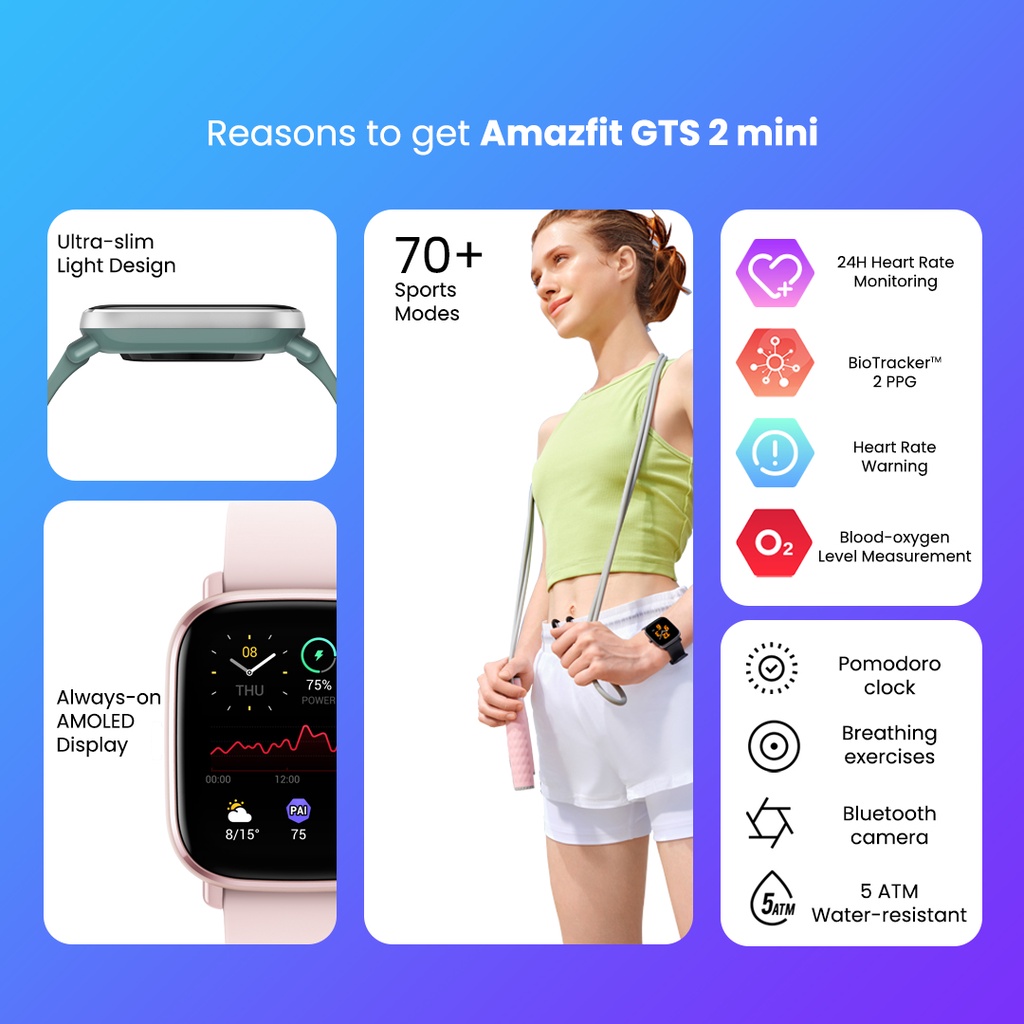 Alasan kenapa harus beli Amazfit GTS 2 Mini SpO2 GTS Black GPS Smartwatch AMOLED Display Zepp 70 Sports Modes Sleep Monitoring SmartWatch For Android iOS Jam Tangan Pintar sekarang