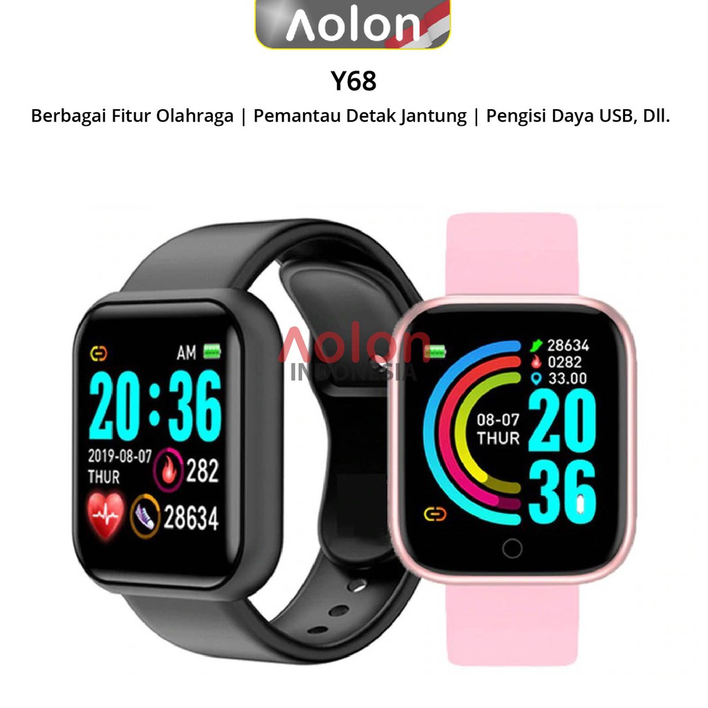 JUAL MURAH Aolon Smartwatch Y68 - Fitness Tracker / Heart Rate Monitor / Layar Lebar / Notifikasi Pesan TERBARU