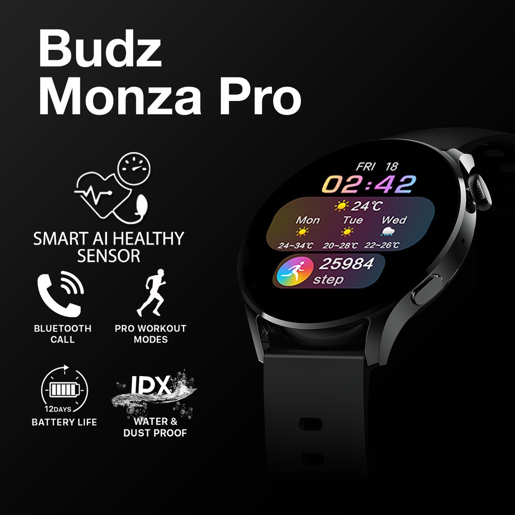 JUAL MURAH Budz Monza Smartwatch Amoled Retina Sport Pria Wanita Ecg Blood Pressure Heart Rate Blood Oxygen Spo2 IP68 Sleep Monitoring Android Iphone Ios Baterai 10 Hari Aksesoris TERBARU