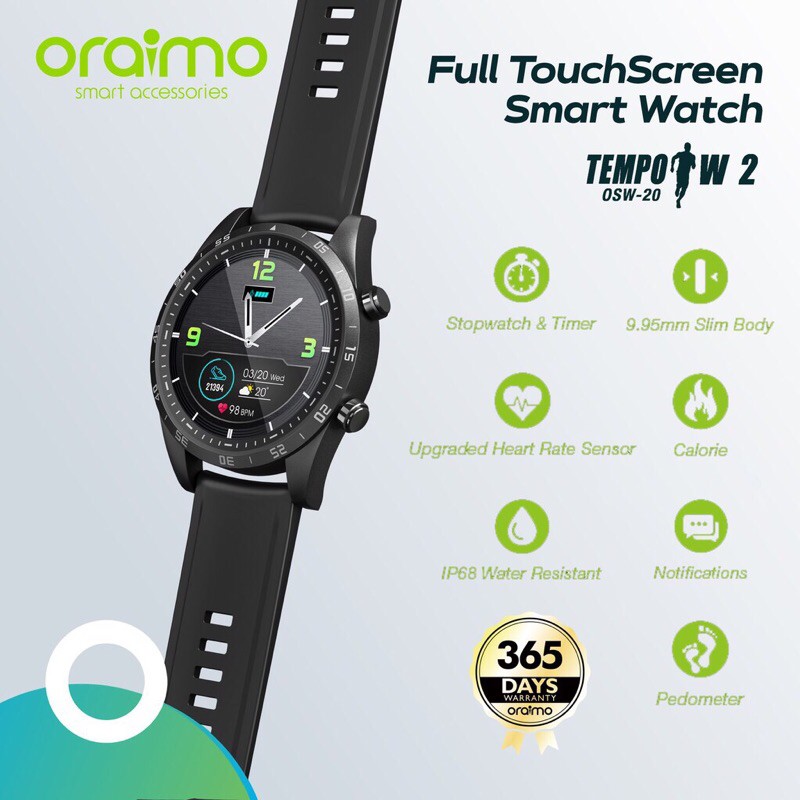 JUAL MURAH Oraimo Smart Watch Jam Tangan Pintar Full Touch Screen Ultra Slim OSW-20 - Garansi Resmi 1 Tahun TERBARU