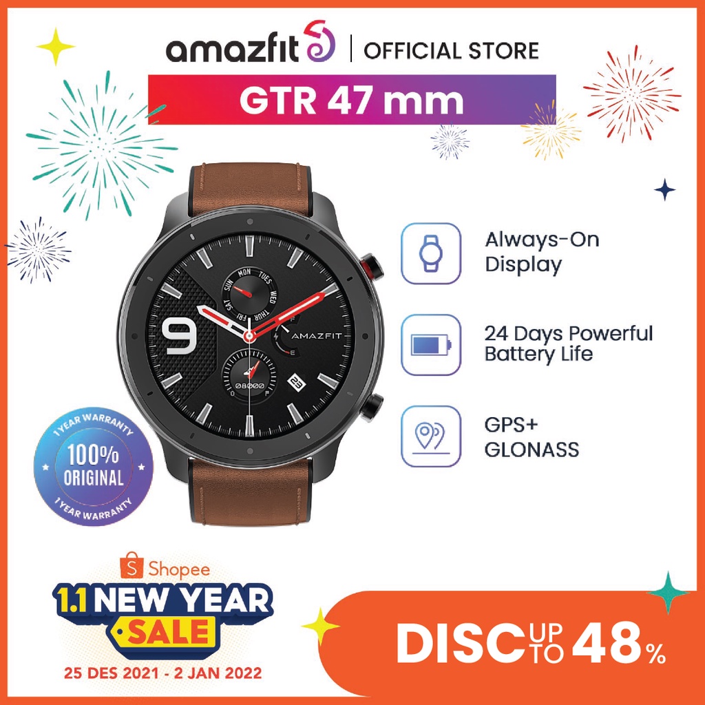 JUAL MURAH Amazfit GTR 47 47mm Smart Watch 5ATM New Zepp Smartwatch Long Battery Music Control For Android IOS Phone Jam Tangan Pintar TERBARU