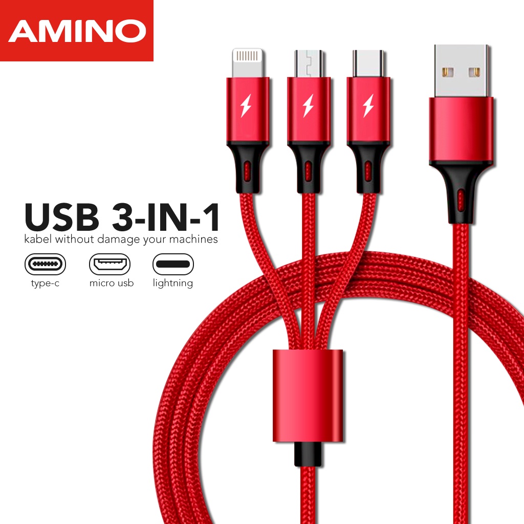 Harga AMINO Max 3A Untuk Iphone / Android Kabel Data USB 3 in 1 Fast Charger iOS + Micro USB + Type C Quick Chargre 1.2M Nylon Braided Cable saat ini masih murah hanya Rp. 19.800,00, kita tidak akan pernah tahu tentang Harga ini di masa depan, juga stok barang ini nanti atau besok hari, bisa saja harganya naik tinggi atau bisa juga stok sudah Habis.