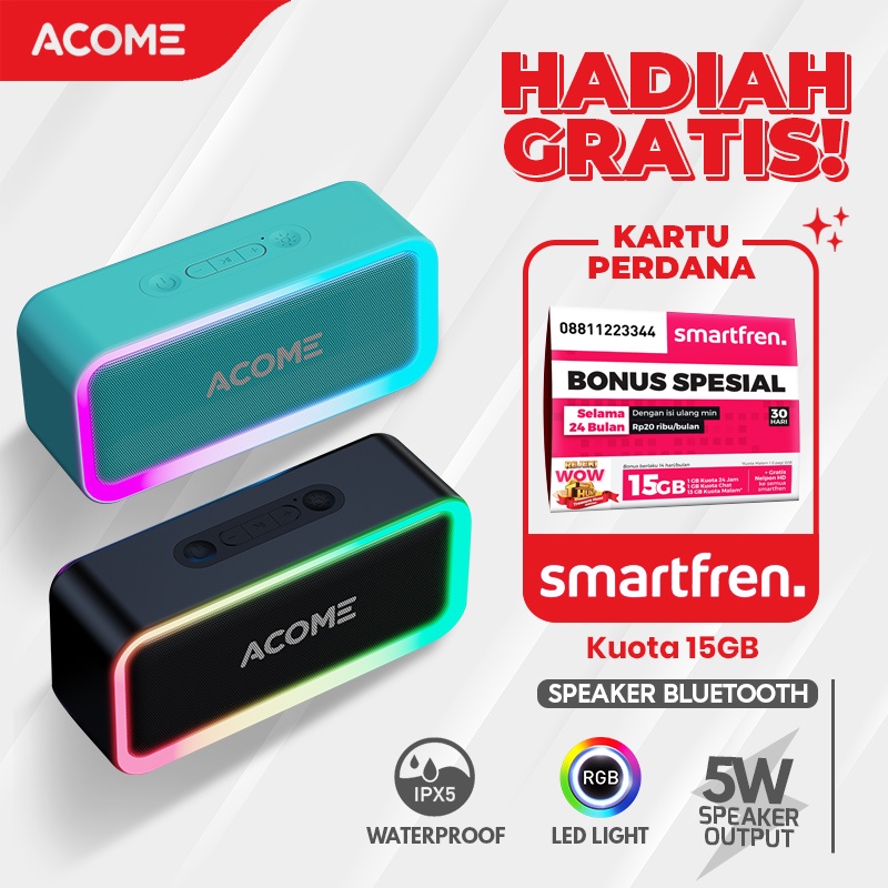 KELEBIHAN & KEKURANGAN ACOME Bluetooth Speaker TWS 5W RGB LED Party IPX5 Waterproof A6 Garansi Resmi 1 Tahun