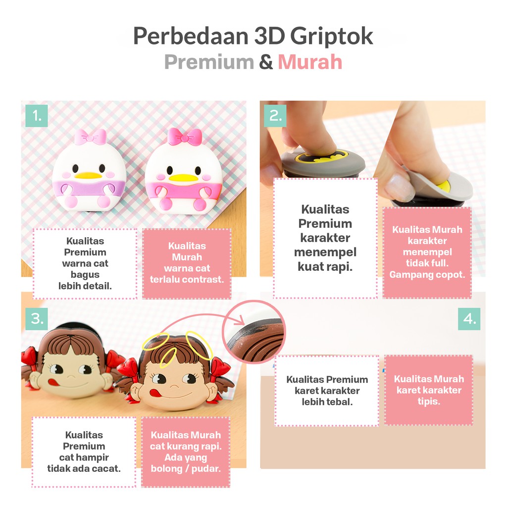 KELEBIHAN & KEKURANGAN (PREMIUM) CARTOON - Griptok 3D/ Phone Holder PVC/ Stand HP/ Phone Stand/ Phone Grip