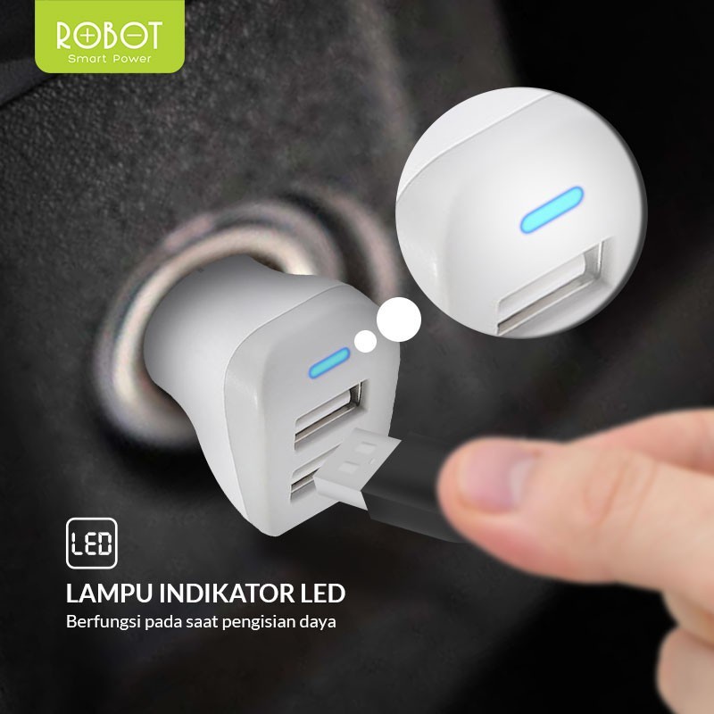 KELEBIHAN & KEKURANGAN Robot Car Charger RT-C06 Sever Mobil 2 Output 2.4A/1A - Grey White Garansi Original Resmi